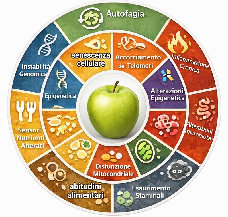Per molto tempo, la medicina ha trattato l'invecchiamento come un fenomeno vago, quasi filosofico. Tuttavia, il vero punto di svolta scientifico è avvenuto quando i ricercatori hanno deciso di applicare alla longevità lo stesso rigore metodologico usato per studiare le malattie più complesse. La storia degli Hallmarks of aging nasce infatti da una felice intuizione, prendendo ispirazione dal successo degli "Hallmarks of Cancer". Proprio come gli oncologi avevano isolato i tratti distintivi che trasformano una cellula sana in una tumorale, i biologi molecolari hanno cercato di definire i denominatori comuni che portano al declino cellulare. Questo sforzo di classificazione ha trasformato l'invecchiamento da un destino oscuro a un processo decifrabile. Inizialmente, nel 2013, questa "mappa del tempo" si poggiava su nove pilastri fondamentali, che spaziano dall'instabilità del nostro DNA all'accorciamento dei telomeri. Recentemente, la mappa è stata aggiornata e i pilastri sono diventati dodici. Questa espansione è la conferma che l'invecchiamento non è un evento isolato, bensì una fitta rete di interazioni dove ogni elemento influenza l'altro, rendendo necessario uno sguardo ancora più ampio e integrato. Ed è per questo che durante le mie visite ambulatoriali a Taranto integro sempre più spesso la medicina della longevità.